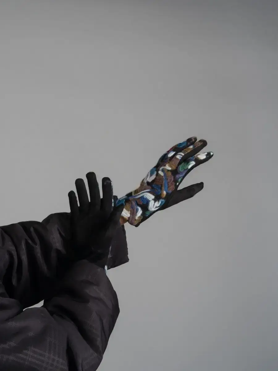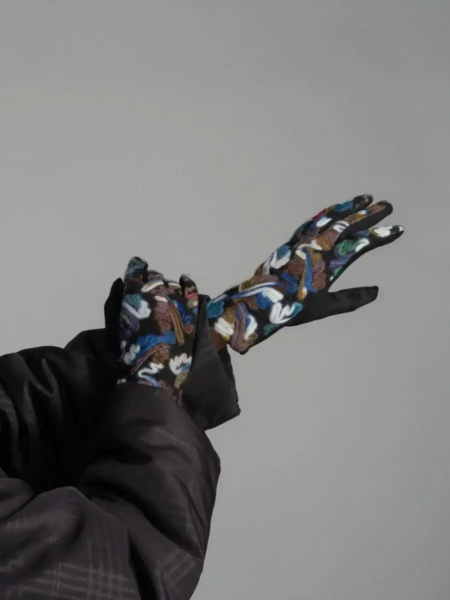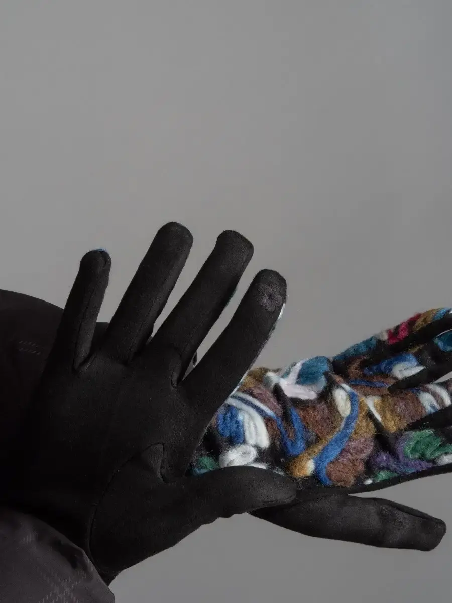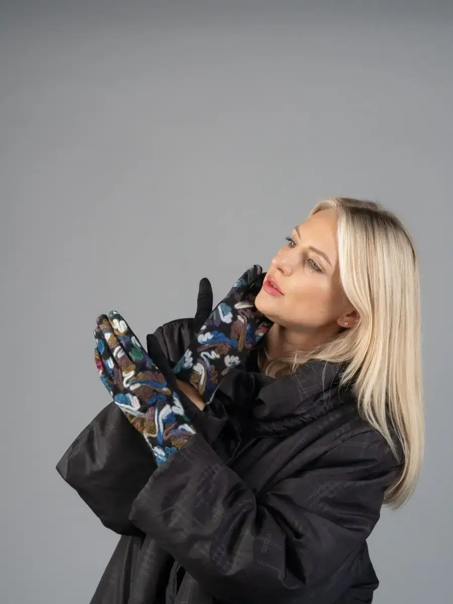 Женские перчатки с цветными вышитыми абстрактными узорами из шерстяной нити.Материал теплых перчаток достаточно эластичный и хорошо облегает руку.Качественная фурнитура, отличная посадка и простой уход, сделают носку комфортной и приятной.Размер универсальный