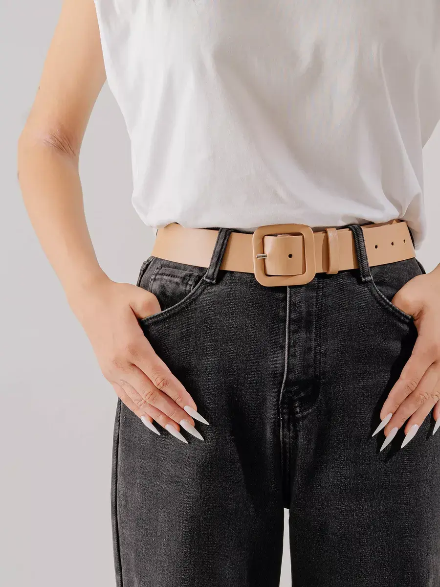 Женский ремень с элегантной квадратной пряжкой матового цвета от бренда Авсень. Регулируемая длина 105см, легко укорачивается под нужный размер. Ширина 3,8см делает брючный пояс универсальным. Поясной кушак подойдет как для делового костюма, так и на брюки, под джинсы, юбку или платье. Как подростковый вариант для школьной формы, при необходимости можно пробить новые дырки. Стильный аксессуар дополнит образ в любом стиле от панк рока до вечернего и нарядного. Подчеркнет талию сделает силуэт более изящным и женственным. Качественные материалы и фурнитура гарантирует долговечность и надежность в повседневной носке. Отличный выбор для подарка любимой женщине, жене или девушке, подростку девочке на др, любой праздник и торжество. В ассортименте представлены брендовые модные толстые ремешки: классические темные - черный, и светлые летние оттенки – белый, бежевый молочный розовый голубой и сиреневый .