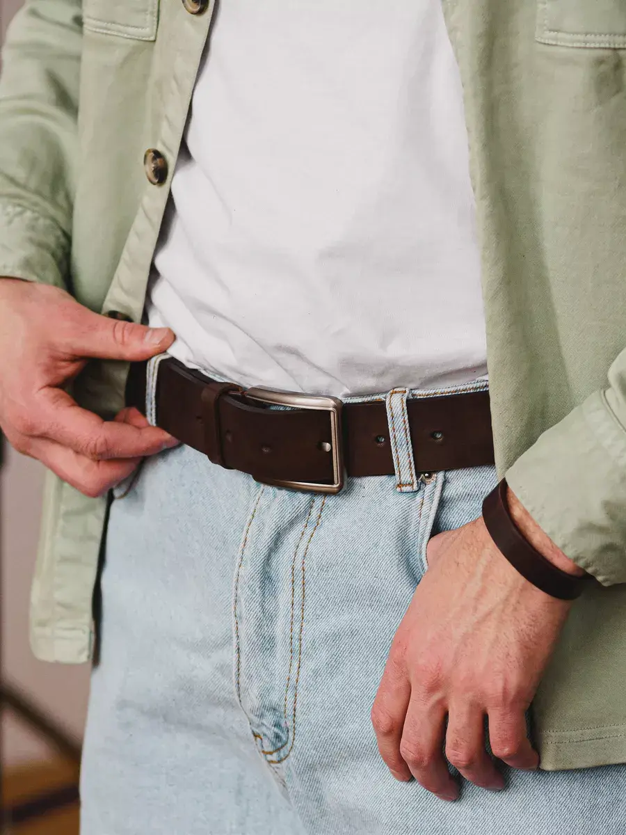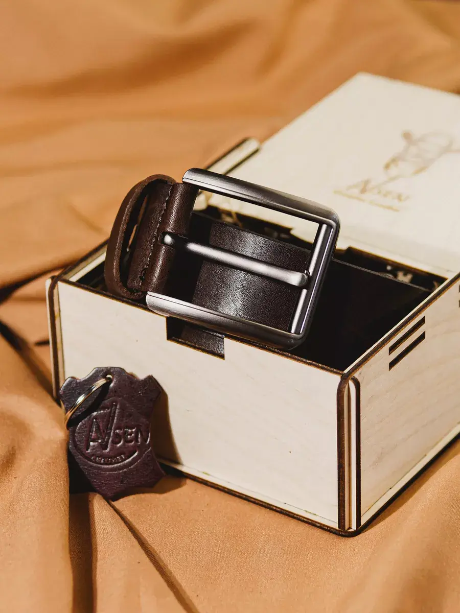 Мужской кожаный ремень оригинальный аксессуар для самых разных стильных образов! Изделие выполнено из гладкой натуральной кожи премиум - качества, имеет регулируемую длину и удобную классическую пряжку. Изделие подходит для офисных, молодежных образов . Красивый аксессуар поставляется в брендированной подарочной коробке из дерева и будет хорошим сюрпризом для любимого мужчины, родных и близких мужчинам. Пояс можно преподнести на день рождения и юбилей, 23 февраля и годовщину свадьбы. Идеальный подарок для брата, папе, дедушке, коллеге, другу или начальнику. Набор включает в себя классический черный или коричневый ремень, который идеально сочетается с джинсами и даже мужскими костюмами. Этот новогодний подарок в 2025 году станет настоящим украшением для любого гардероба в новому году. Ремень обладает универсальным дизайном, он элегантный и прочный, что делает его качественным выбором для любого случая. Упакован в деревянную коробку, в подарок идет брелок.