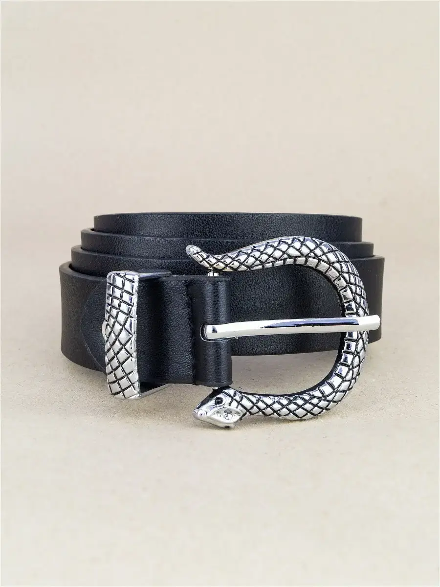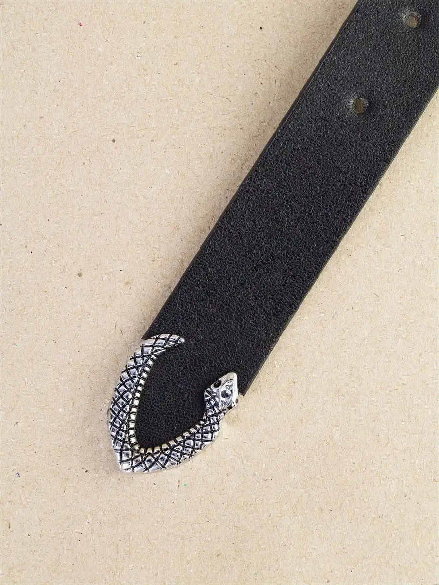 Ремень является главным аксессуаром в повседневной жизни человека. При помощи обычного ремня можно выделить талию, из скучного образа сделать яркий, а также законченным или более утонченным. Пряжка и конец ремня выполнены в виде змейки.