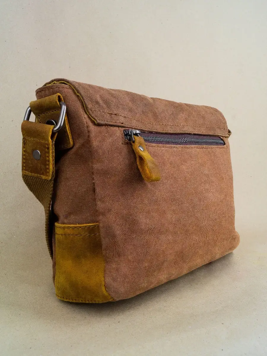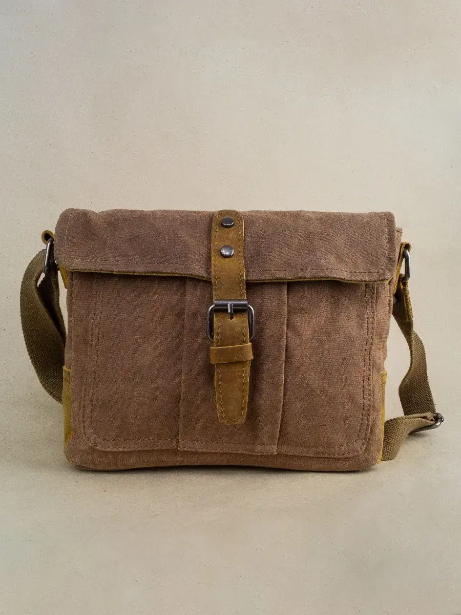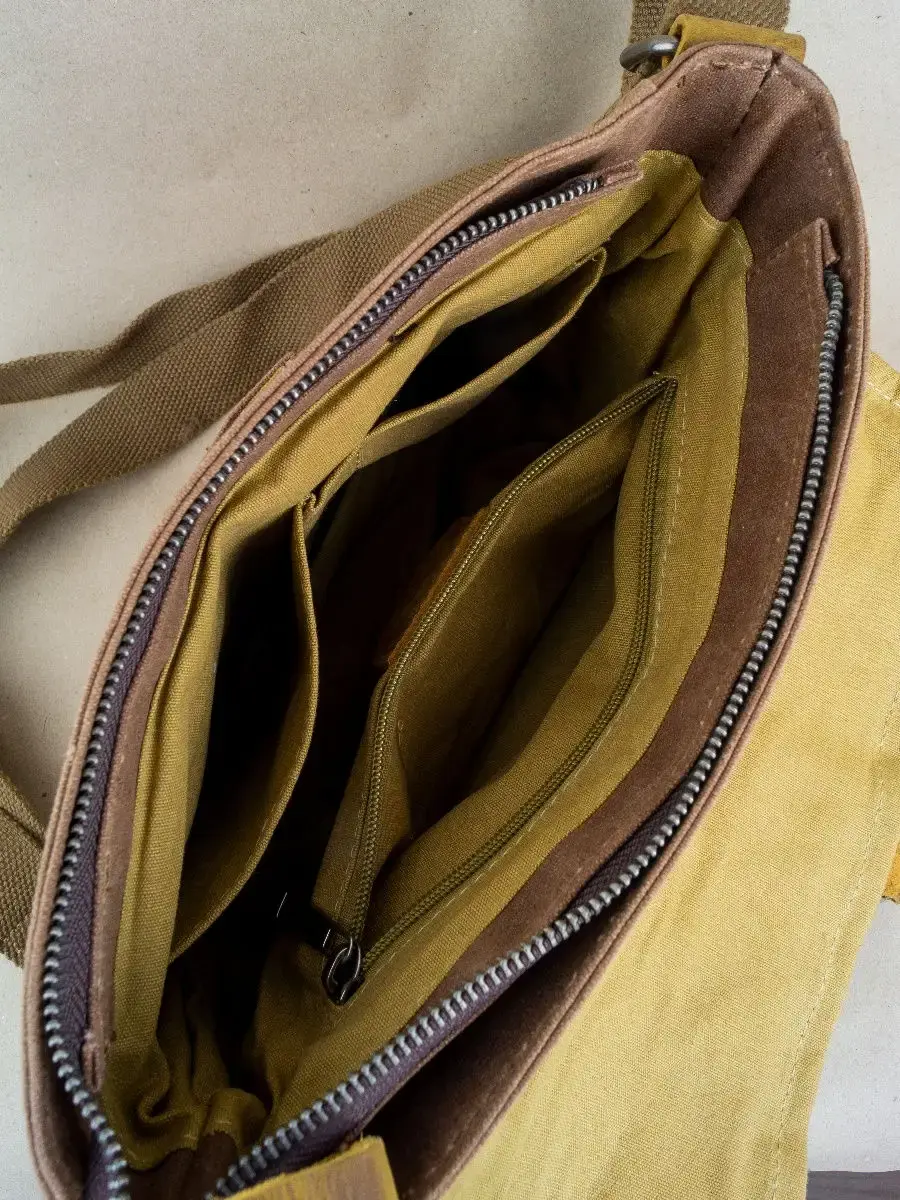 Сумка торговой марки Авсень выполнена из канваса особой прочности и натуральной кожи КРС. Канвас пропитан влагоотталкивающим составом. Ширина 31 см высота 21 см глубина 8 см. Основной отдел на металлической молнии, внутри 2 кармана открытого типа под телефон или другую мелочь, 1 карман на замке. Закрывается основной отдел клапаном , для большей герметичности сверху закрывается на магнит с помощью кожаной лямки. Под клапаном карман открытого типа, с задней стороны сумки 1 карман на молнии. Плечевой ремень несъемный, длина регулируется от 75 см до 150 см.