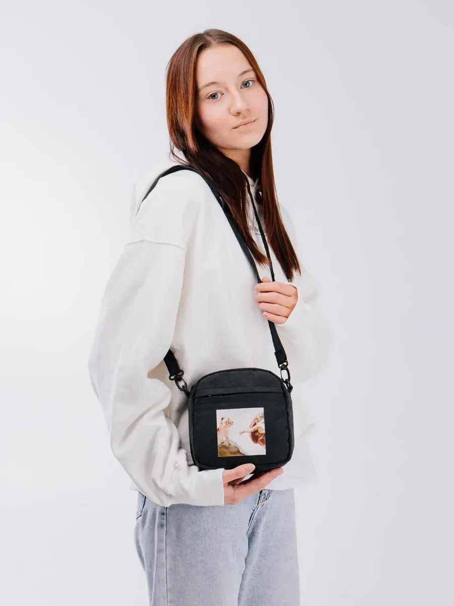 Сумка выполнена из прочной тканевой ткани с уникальным граффити рисунком и стильной надписью, что придаёт ей неповторимый характер. Благодаря черному цвету и современному дизайну, она подходит как для подростков, так и для более зрелых женщин. Универсальность этой сумки позволяет её использовать как среднюю спортивную, так и повседневную модель для ношения на плече или через плечо.