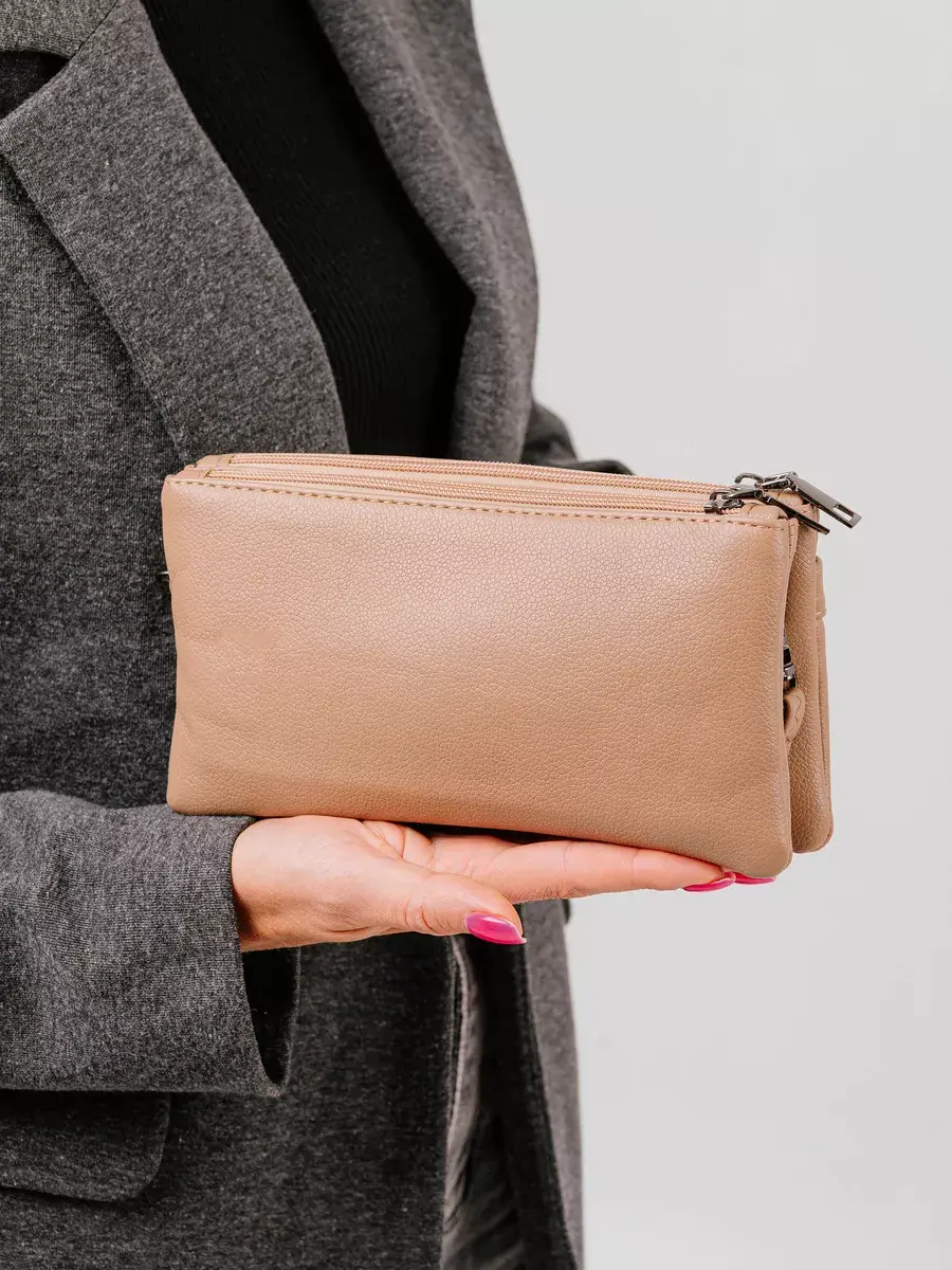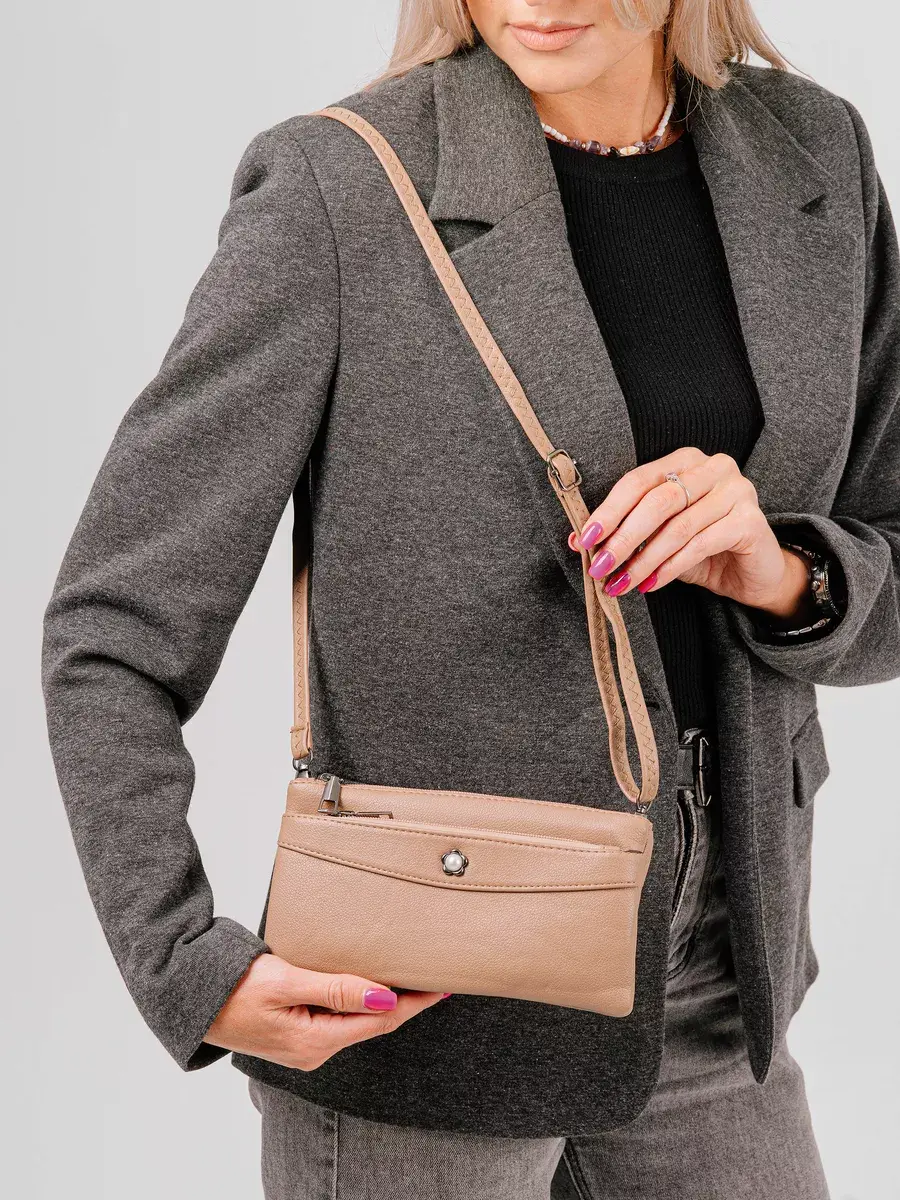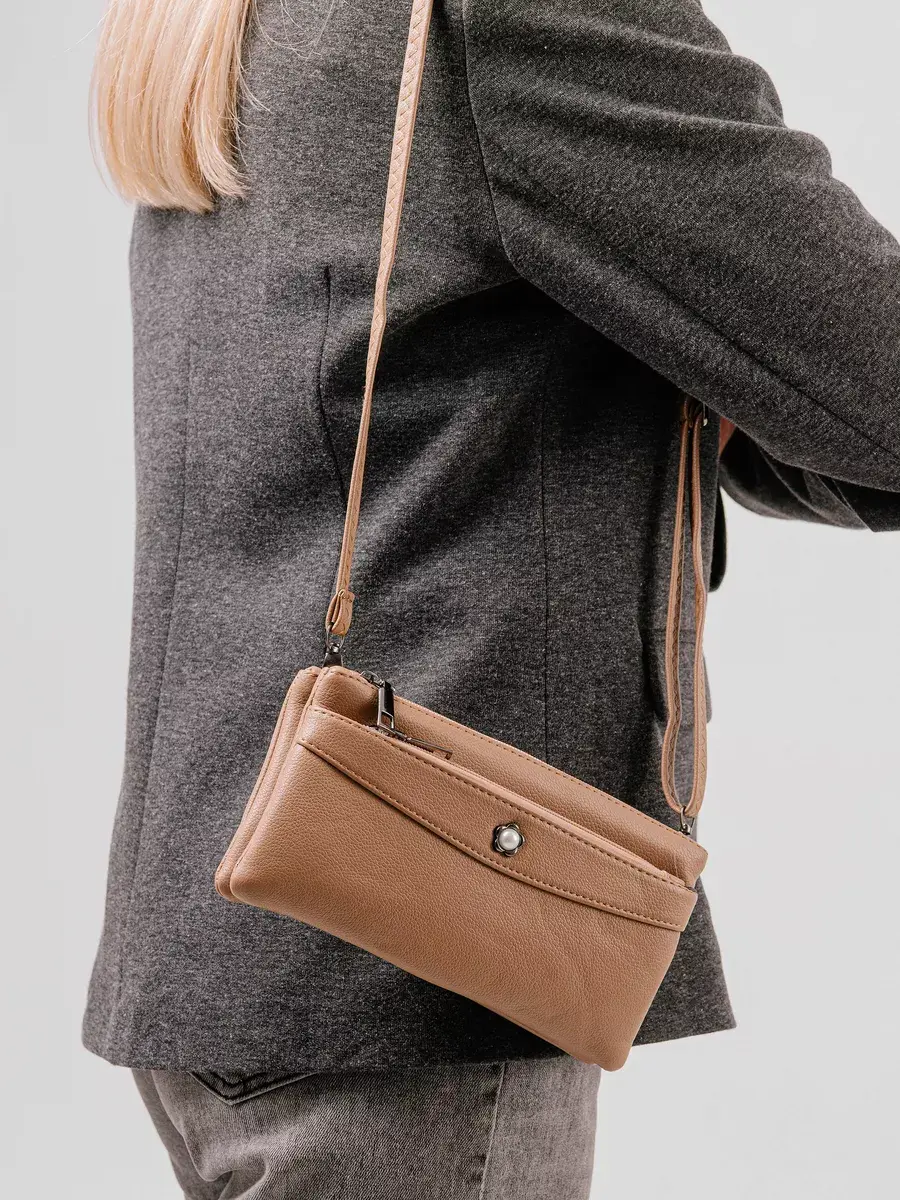 Качественная небольшая сумочка, но в тоже время вместительная на плечо, на руку. Ремень на плечо регулируется от 65 см до 130 см. Два отдела на молнии, между ними один открытый отдел, сзади карман на молнии для телефона или ключей. Крепкая подкладочная ткань.
