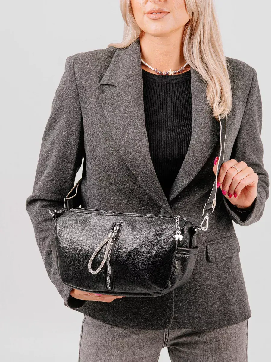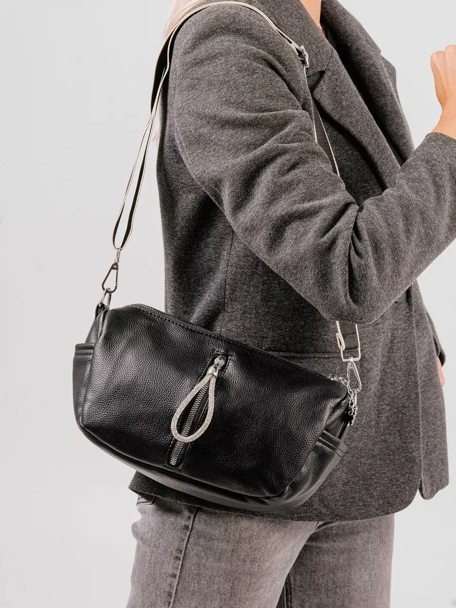 Женская сумка через плечо — именно тот аксессуар, который сделает ваш повседневный образ неповторимым. Изготовлена из экокожи премиального качества, схожей с натуральной. Высококачественная фурнитура, прочные аккуратные швы и крепкая плотная тканевая подкладка позволят дамской сумке прослужить ни один год. Мягкая сумка маленькая, но вместительная. Два отделения на молнии вместят все самое необходимое и ценное: кошелек, телефон или документы. Передний карман на замке можно использовать для любой мелочи, а задний отсек, например, для ключей. Регулируемый длинный ремень позволяет носить сумку кросс-боди как на плече, так и через плечо. Черный цвет придает ей элегантности и универсальности, сочетается с различными стилями гардероба, например будет лаконично смотреться со спортивным, молодежным или подростковым стилем. Идеально подойдет как для повседневного использования, так и для особых случаев. Будь то прогулка по городу или вечеринка, небольшая вечерняя сумочка подчеркнет индивидуальность и станет отражением вашего стиля.